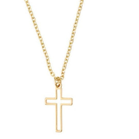 Elegant gold-plated cutout cross necklace that beautifully expresses your faith with timeless style. This stunning Christian necklace features a delicate cutout cross pendant on a 15" chain with a 2" extender, perfect for worship, daily wear, or as a meaningful gift for women of faith.