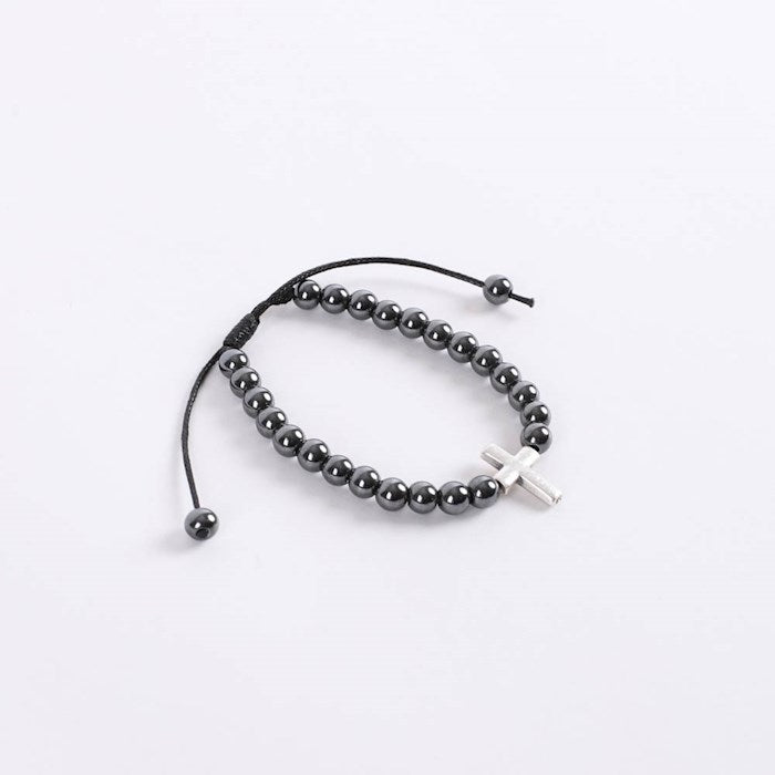 Elegant beaded hematite bracelet with cross charm—a meaningful Christian jewelry gift that combines natural stone beauty with faith. This adjustable bracelet features polished hematite beads and a delicate cross charm, perfect for daily wear or as a thoughtful gift for men and women of faith.