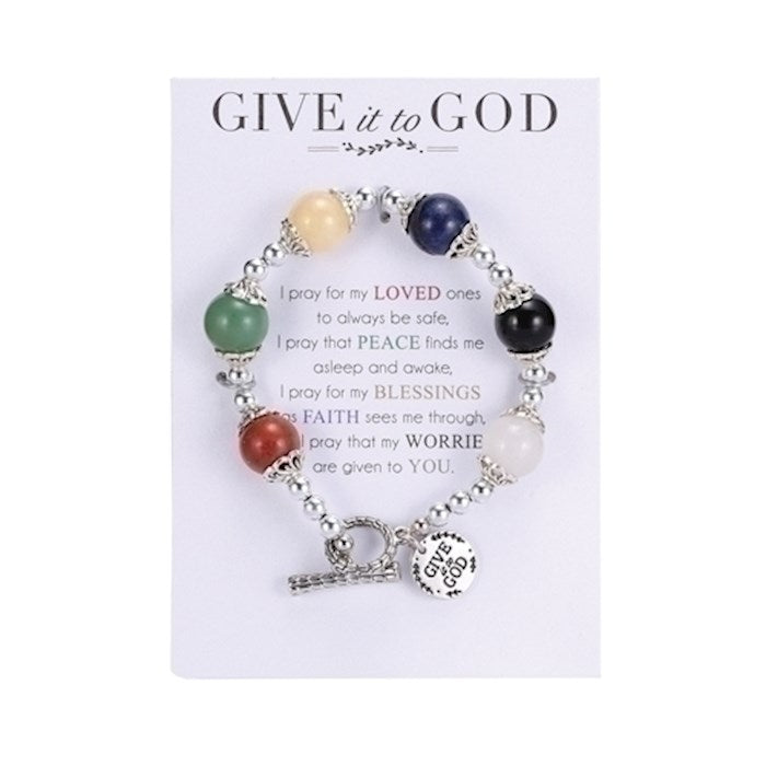 Bracelet-Give It To God-Multicolor Stretch W/Prayer Card (7")