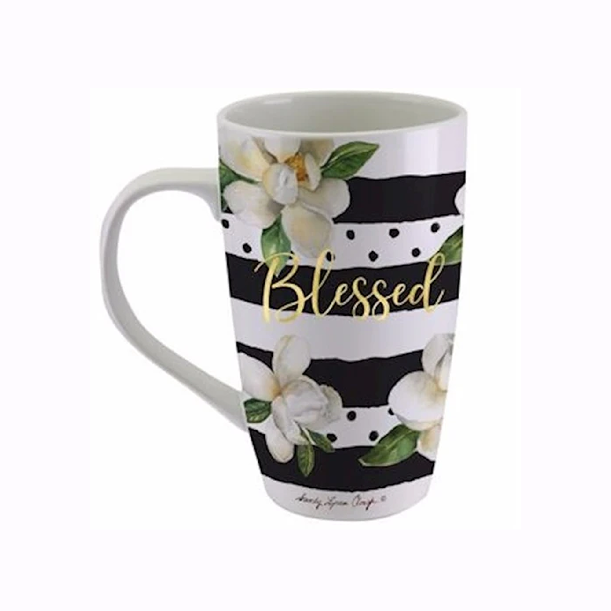 This elegant two-tone latte mug features detailed white magnolias and a simple striped design, paired with 'Blessed' and Psalm 113:2. With its generous 17 oz capacity, it's perfect for your morning coffee, afternoon tea, or evening cocoa while reflecting on God's blessings.
